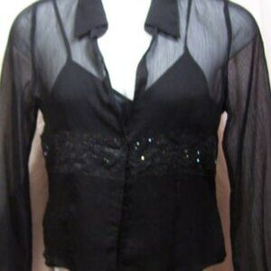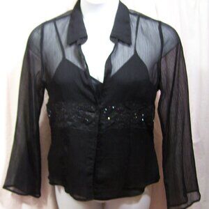 Gloria Vanderbilt Rich Black Sheer Blouse Set With Camisole Accent Bling Beads