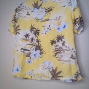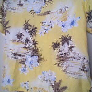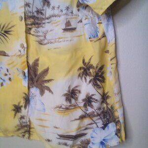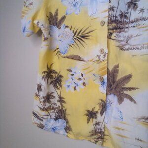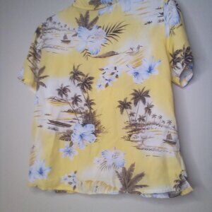 Gloria Vanderbilt Shirt Blouse S Button Short Sleeve Tropical Beach Yellow Brown