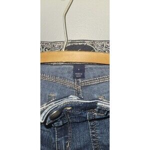 The Gloria Vanderbilt Shorts for women in size 8 are a stylish and flattering option for casual wear. Made from a blend of polyester, spandex, and cotton, these denim shorts feature embroidered pockets for added detail. With a solid blue color and a mid-rise fit, these Bermuda-style shorts are perfect for a comfortable and on-trend look. The slimming features make them a great choice for any casual occasion.