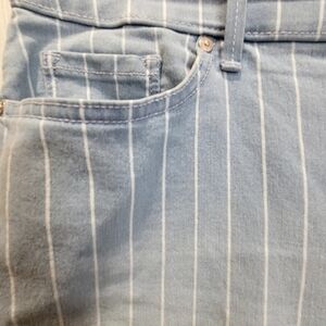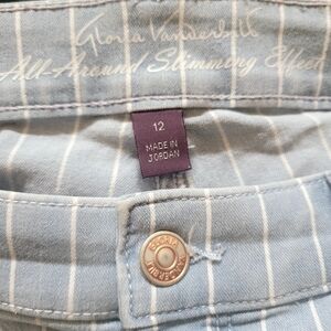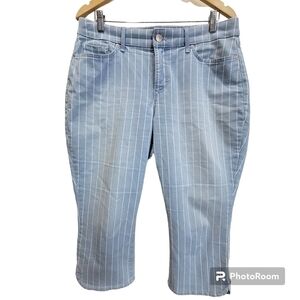 Gloria Vanderbilt Size 12 Cotton Blend Blue White Stripes Capri Jeans Summer