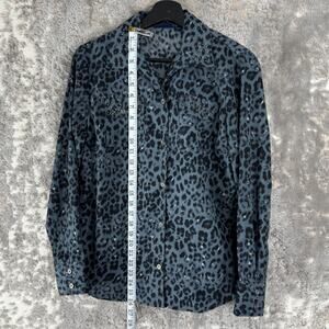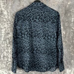 Gloria Vanderbilt Size S Leopard Print Rhinestone Casual Button Top Blue