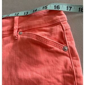 B-These wonderful Capri jeans were worn only once. Perfect and comfortable for all of your running around or weekends out. Measurements are in the pictures.