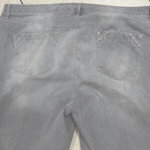 Gloria Vanderbilt Stefania Women’s Plus Size 24W Gray Crop Jeans Embellished Pockets. Good preowned condition. Approximate flat measurements Waist 23” Rise 12” Length 37” Inseam 27” Bin K