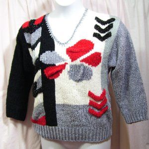 Gloria Vanderbilt, Sweater Boucle Red ,Gray, Black White, Size M NWOT