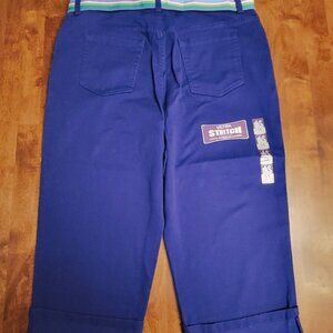 Gloria Vanderbilt ~ Sz “Missy” 16 ~ Blue Capris W/Belt ~ NWT