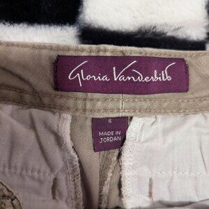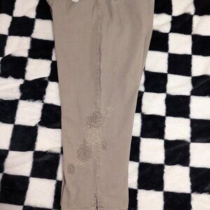 Gloria Vanderbilt Taupe Cropped Straight Leg Pants W/ Rose Embroidery- Size 6