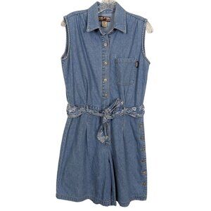 Gloria Vanderbilt Vintage Sleeveless belt elastic waist denim romper jumpsuit S