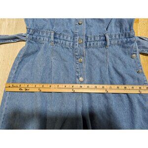 This is an excellent Vintage Gloria Vanderbilt Sleeveless denim belted elastic waist denim romper jumpsuit S.
