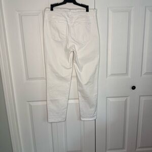 Experience timeless elegance with Gloria Vanderbilt's white straight jeans, designed to offer a sleek and versatile look. Crafted with precision, these jeans provide a comfortable fit and a classic silhouette, making them a perfect addition to any wardrobe. Like new except a tiny speck on the back leg. 28 inch inseam. Offers welcome.