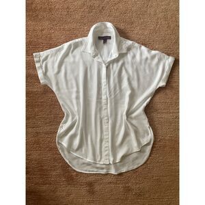 Gloria Vanderbilt White Button Front Blouse Dolman Short Sleeve Top Size M