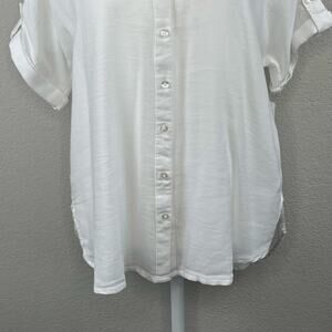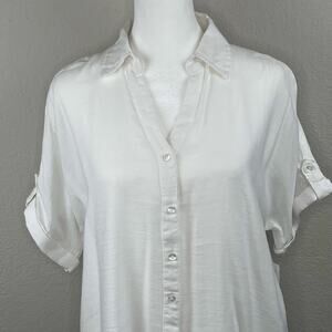 Gloria Vanderbilt White Cuffed Tab Short Sleeve V-Neck Tunic Top Small NWT