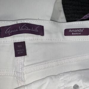 Elevate your style with these classic Gloria Vanderbilt white jeans! Featuring a flattering Amanda boot cut and a slimming panel, these jeans offer both comfort and a streamlined silhouette. The crisp white color makes them perfect for any season. These jeans are a size 16 Short. Don't miss out on adding this essential piece to your wardrobe!