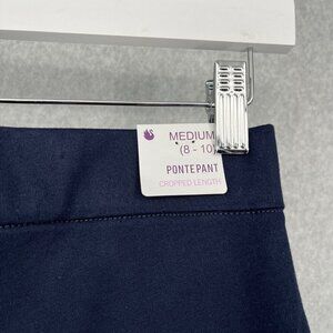 Gloria Vanderbilt Wide Leg Point Crop Pant Size M Navy Blue Pull On Pockets NEW