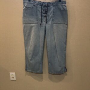 Gloria Vanderbilt Wide Leg Side Slit Capri Denim Light Wash Lace up Front-14P
