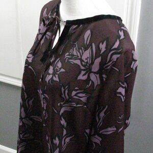 Gloria Vanderbilt Wine/Lilac Floral Semi Sheer Tie Front Blouse Size Large