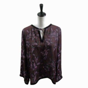Gloria Vanderbilt Wine/Lilac Floral Semi Sheer Tie Front Blouse Size Large