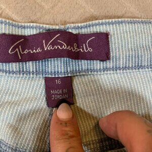 Gloria Vanderbilt Women 16 Denim Jeans Blue Striped Amanda Straight Crop Coastal