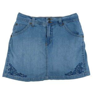 Gloria Vanderbilt Women 8 Blue Denim Jean Skort Skirt Built in Shorts Pockets