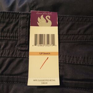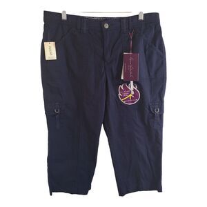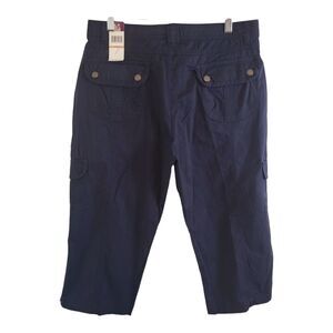 Gloria Vanderbilt Womens 12 Petite NEW Cargo Capri Pants Navy Blue Stretch Light