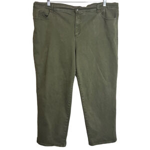 Gloria Vanderbilt Women's Amanda Jeans 24W Short Olive Green Straight Leg Cotton Spandex