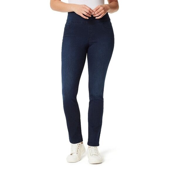 Gloria Vanderbilt Womens Amanda Pull On Slim Straight Jeans Dark Blue Size 4 NWT