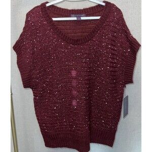 Gloria Vanderbilt Women's Burgundy With Sparkles Pullover Top Size Large