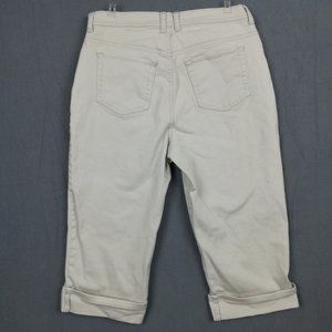 Gloria Vanderbilt Womens Jeans Crop Denim High Rise Cream Khaki Cuffed 12
