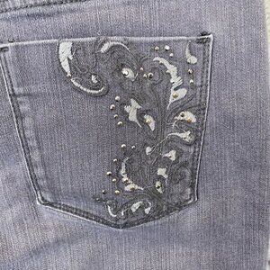 These Gloria Vanderbilt Amanda jeans offer a timeless blend of comfort and style. With intricate embroidery on the back pockets, these gray denim jeans are tailored in a classic fit, providing a flattering silhouette. Crafted from quality materials, they are a reliable wardrobe staple, versatile for various settings.