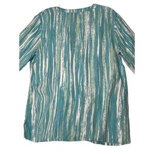 Step into a world where style meets comfort with this Gloria Vanderbilt peasant tunic. Crafted from breathable viscose, the bell sleeves add a whimsical touch, making it the ideal choice for both casual outings and special gatherings. The serene blue and green hues evoke tranquil memories of ocean waves, ensuring you stand out gracefully.