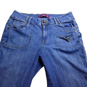 In the world of denim, these Gloria Vanderbilt jeans tell a tale of style and comfort. Designed with a flattering straight leg and crafted from stretch denim, they offer flexibility and a timeless medium blue hue. Perfectly tailored pockets add a touch of sophistication to this wardrobe essential.