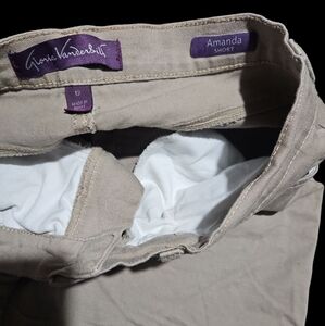 Stylish and versatile tan shorts. Ideal for casual outings. Cute detailing on back pockets.