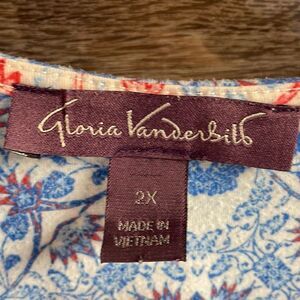 Gloria Vanderbilt Womens Embellished Tunic,Asymmetrical,Size 2X,Red,White,Blue