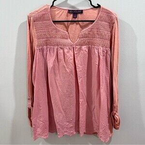 Gloria Vanderbilt pink vneck roll tab sleeve blouse size large