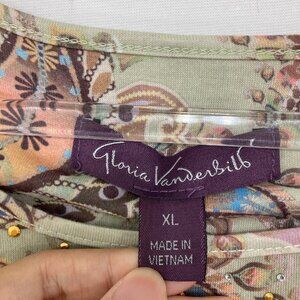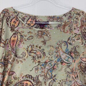 Gloria Vanderbilt size XL Multi Color Paisley Boho Beaded Stretch 3/4 Sleeve Top