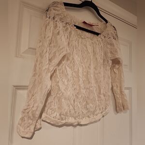 Gloria Vanderbilt white lace off the shoulder long sleeve top