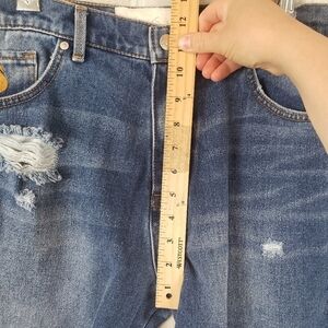 Excellent like new condition, mid rise, straight leg, denim pants, light distressing.