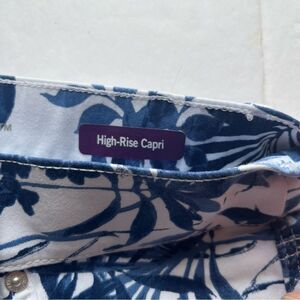 Gloria Vanderbilt Women's Floral Blue and White Capri Hi Rise Pants Size 10