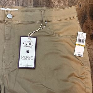 Gloria Vanderbilt khaki unltd Sadie Bermuda Shorts NWT 16W. Stretch khaki shorts with false front pockets but two real back pockets. Stretchy and comfortable. Brand new with tags.