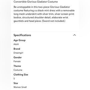 Glorious Gladiator Woman's Costume Size Medium & Size XL