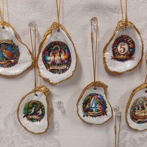 Glorious Gold #3 12 Days of Christmas Oyster Shell Ornaments + 2 Bonus Ornaments