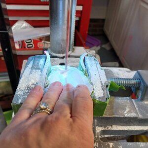 Each oyster shell has been throughly cleaned and sanitized. The holes that will hold the ornament string has been personally drilled. See my drill press!