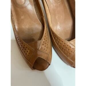 Glorius Brazilian leather peep toe pump 8 2 3/4" wooden heel Classic Luggage tan