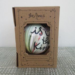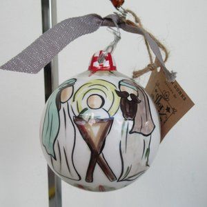 Glory Haus Hand Blown Glass Ball Christmas Ornament w/ Beaded Hook Nativity