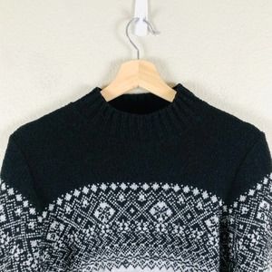 Glory USA Sweater Black White Fairisle Mock Neck Pullover Cropped Size Small