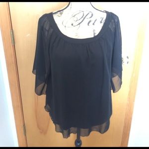 Beautiful flows black top. Sheer sleeves that lays beautifully when on. Still in great condition almost like new. (Not actual brand just listed for exposure)