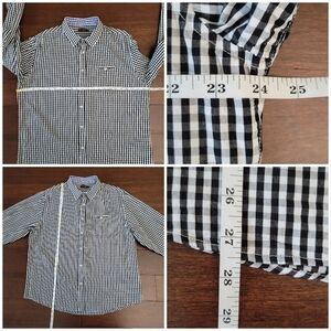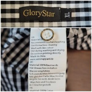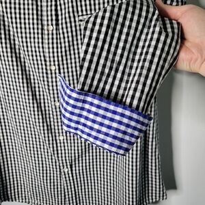 GloryStar Black & White Gingham Plaid Contrast Flip Cuff Button-Up Shirt Mens XL