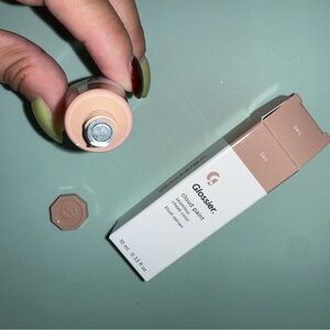 Enhance your cheeks with Glossier's soft peach blush. Easy to blend for a natural glow.