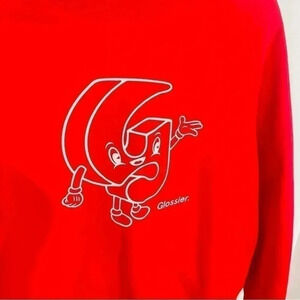 The Glossier G Pal graphic crewneck sweatshirt is a red and white cotton blend sweatshirt from a limited edition release, making it a sought-after piece for Glossier fans and collectors. Featuring the iconic G Pal graphic, this crewneck delivers casual streetwear appeal with recognizable brand identity. The relaxed fit and soft fabric make it ideal for everyday wear, lounging, travel, and off-duty styling. A rare Glossier sweatshirt that works as a graphic crewneck, collector piece, or statement casual staple.