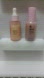 Glossier skincare set featuring a pink dropper bottle and a clear spray bottle. Perfect for a glowing complexion.