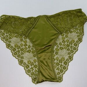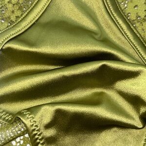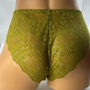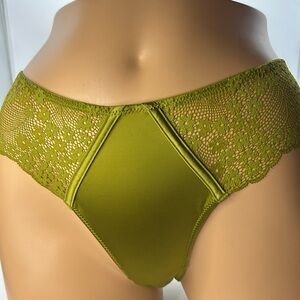 Last Pair ! Glossy Satin Lace Edge French Inspired Boudoir Chartreuse Green Stretchy Panties XL Brand New . Never Worn . High End .. beautiful silky liquid satin .. smooth and very stretchy . 90% polyester 10% Elastane spandex . These feel incredible against your skin!